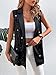 WDIRARA Women's Houndstooth Print Sleeveless Lapel Raw Trim Button Front Long Vest Jacket, Solid Black, Large