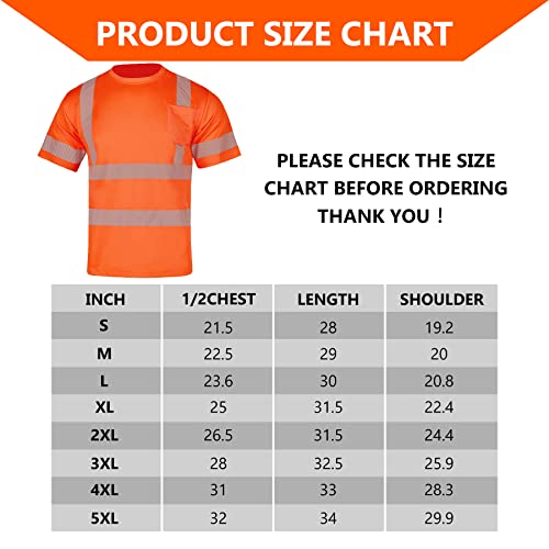 FONIRRA 3 Pcs Hi Vis Safety T Shirt for Men Class 2 ANSI Reflective High Visibility Short Sleeves Work Shirt, 3pcs-orange, 3X-Large