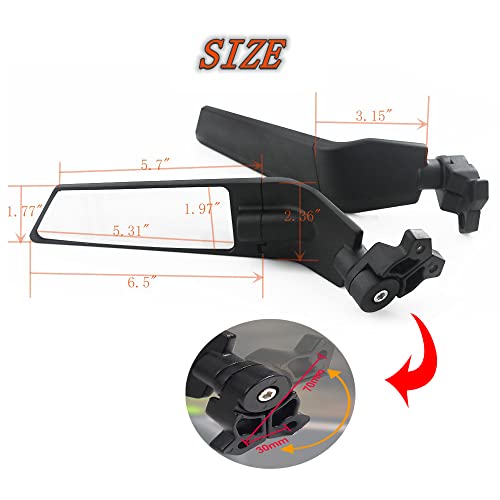 - 【High Adaptability】Fit for Kawasaki Ninja 400/650 2018-2023 ZX6R ZX10R ZX-636 2018-2022 Honda CBR600RR CBR1000RR 2009-2023 BMW S1000RR ABS Premium Suzuki(Anti-glare lens),suitable for most models with a hole pitch of 30-70mm, 【FASHION DESIGN】This Adjustable Stealth Side Mirrors divided into two types: side view mirror/wind wing. When you don't need side view mirror, it can be adjusted to the wind wing mode to make the body produce a downward force to offset the lift, effectively reduce the air resistance when driving at high speed, saving fuel ,and can greatly improve the stability and the speed of turning., 【360-degree adjustment】Freely Adjustable design, the body can rotate 360 degrees,which can be adjusted at multiple angles.Two rotating shafts can up and down 180 degrees.Two modes of rear view mirror/fixed wind wing,multiple choices to help you find the most suitable angle, 【Material】The Adjustable Stealth Side Mirror is made of HD Convex Glass and CNC aluminum T6061, which has high density, medium strength, good corrosion resistance.Using anodizing technology, can withstand high temperature and ultraviolet rays,good decorative performance and has a long service life.Provide you with long-term service., 【Package contains】1pair of Adjustable Stealth Side Mirror, 4 x Cushion Pad,8 x Screw 2 x Wrench