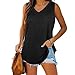 Pub Summer V-Neck Swallowtail Sleeveless Short Sleeve Solid Color Tank Top Casual T-Shirt for Women (Black, M)