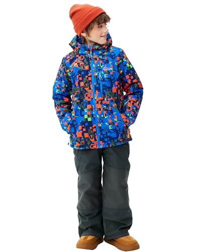 - Waterproof & Windproof: The ski suit adopts high-performance windproof and waterproof fabrics, to fully effectively block the invasion of rain and snow, to prevent water seepage. All seams are sealed and resistant to abrasion. Satisfy all rain and snow weather skiing and other winter outdoor sports., Anti-Static: High quality packing 100% polyester fibers provide lightweight warmth as the insulating material, so that the fiber surface is hydrophilically, and the surface ionization of the fibers is also effective to prevent static electricity., Warm Snow Jacket: Removable Hoodie design, adjustable elastic cuffs , professional zipper, and snow skirt design, plus premium thermal lining fabric, all keep you warm from the cold., Adjustable Snow Pants: The snow bib has an adjustable waist and detachable shoulder straps. The wear-resistant canvas knee pads prevent tear and wear. The reinforced knee and inner cuff gaiters will keep your kids warm and comfy while maintaining enough movement space., Occasion: The boys snow suit suitable for trip, skiing, skating, hiking, camping, mountain climbing and other winter outdoor activities.