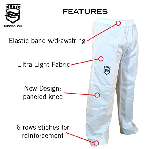ELITE TAEKWONDO Training Pants (TKD) Ultralight Fabric and Mesh, White, 210 (7)