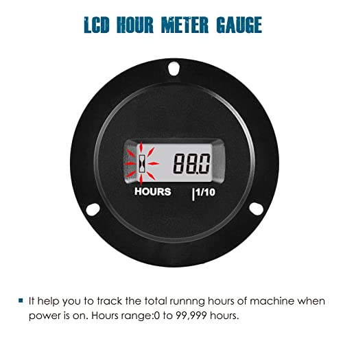 Runleader Digital LCD Hour Meter, AC/DC 5V to 277V,Maintenance Total Running Hours,Data Storage,Waterproof Design for Lawn Mower Generator Motorcycle Golf Cart Forklift Scrubber Machine.