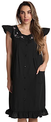 - DREAM IN STYLE: Make hitting the sheets the prettiest part of your day. This cap sleeve nightdress for women inspires smiles whenever you slip it on with its pleated detail, lovely button front, lace picot edge, flutter sleeve and beautiful floral patterns., SAVOR THE COMFORT: Looking for breathable summer pajamas? A soft nightie that can double as comfy loungewear? This women’s nightgown treats you to skin-pampering comfort and keeps you cool as you slumber with its 55% cotton 45% polyester woven fabric., A FIT YOU’LL LOVE: Whether you’re petite, plus size, or somewhere in between, you’ll find a great fit from our wide size range. With every sleep dress being loose-fitting and flowy, you get to move without issue, sleep without restrictions, and lounge in ultimate comfort., DESIGNED TO LAST: Wash after wash, this ladies’ nightwear retains its softness and color. We also pride ourselves on strict quality control and great attention to detail. This means well-done hems and a clean look to create comfy sleepwear you’ll love to wear., GREAT VALUE: Dreamcrest is all about giving you the latest fashion at the best prices around. Our cute women’s night gown is backed with a total satisfaction guarantee; because leaving you with a smile is what we’re all about. Get ready for beautiful sleepwear that’s serious about comfort!