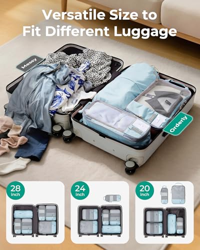 - 6 Set Compression Packing Cubes - If you'll be preparing multiple outfit options for your travel, you no longer have to sacrifice style for luggage space when you come across BAGSMART PACKING CUBES. Large for jackets, sweaters, and trousers, Medium for shirts, and blouses, Small for underwear, drawstring can be used as a laundry bag to separate your dirty/wet clothes or shoes., True Space Saving - These compression travel cubes are kind of like how a vacuum sealer works. Done by adding an extra zipper around the outside that can be zipped up to help squash clothes down and minimize the space inside. It’s remarkable how much of a difference they can make. Help travelers “Fit Double the Amount” in their suitcases., Durable Travel Essentials - We're sure you'll want to make sure you get a high-quality suitcase organizer that won't break in a few months. Hundreds of experiments simulating real-use scenarios have enabled us to improve the durability. And, it’s also worth noting there’s an ID tag pocket on the front of the packing organizers to help you further optimize your packing scheme. So you can remember which cube contains your favorite T-shirt., Lightweight Travel Accessories - Super light fabric ensures packing your clothes neatly in luggage without adding extra weight. Great for when you want to minimize weight as much as possible and save space within your suitcase., What We Care - Every traveler has their packing style preferences, and BAGSMART provides plenty of flexibility for any type of traveler. We hope to sell not just a commodity, but also a love. Love to travel, love the outdoors, love the journey of you. If there are any quality problems, please do not have any hesitation. Contact us for a timely and satisfactory answer!