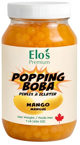 Popping Boba 1lb (Mango Flavour) For Bubble Tea| DIY Marble Size Boba Pearls Bursting Tea Balls| Right Taste And Textures For Authentic Asian Dessert| Closable Jars For Extended Shelf Life| By Elo’s Premium