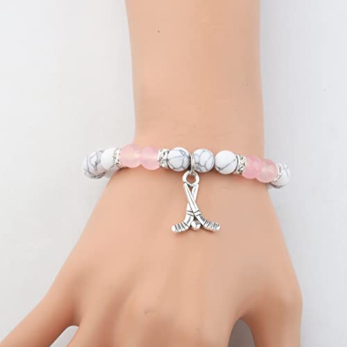 MAOFAED Hockey Gift Ice Hockey Gift, Healing Gemstone Beaded Bracelet for Women/Girls (sugar hockey beadCA)