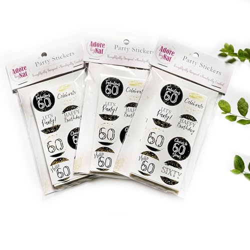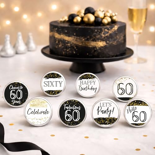 - 240 pieces of 60th Birthday Sticker Labels for candies, with 8 (eight) different designs in each set. Candies are not included., Each round sticker is 0.75 inches in diameter., High-quality bright and sharp colors semi glossy stickers, easy to peel and stick well., Matching favor/ gift tags, cupcake toppers, tent cards, water bottle labels are also available for a fun and memorable themed party., Handmade and 100% Satisfaction Guaranteed.