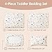 - 4 Piece Toddler Bedding Set - this cars printed toddler comforter set includes a quilted comforter (42'' x 57''), a top sheet (45'' x 60''), a fitted sheet (28'' x 52'' + 8") and a envelope pillowcase (20'' x 30''). It fits a standard toddler bed perfectly., Soft Microfiber Toddler Beddings - This printed toddler bedding set is crafted from premium double brushed microfiber with amazing softness and comfort, filled with 200 GSM microfiber polyester, ideal for all season, cool in summer and warm in winter, providing heavenly comfortable sleeping experience for your kids., Cute Print Toddler Comforter Set - Our designers chose these patterns to create a sweet dream for kids, from dinosaur, astronaut, cars to unicorns, mermaid, you’re sure to find a bed set your child will love., Exquisite Craftsmanship - 8 inch pocket with all-around elastics secures fitted sheet stay on toddler bed or crib well,not easy to slip or lose elasticity. Envelope pillowcase is easy to put pillow in or out., Easy to Care for - No fabric is more easier to care for than microfiber, machine washable in the cold, tumble dry in the low heat, resistant to pilling and fading, making it the ideal fabric for kids and babies.