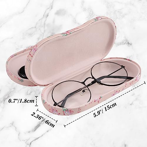 MoKo Double Eyeglass Case, 2 in 1 Double Sided Portable Glasses Case Contact Lens Case with Mirror Eye Glasses Carrying Bag Anti-Scratch Sunglasses Pouch Protective Eyewear for Men&Women, Pink Flowers