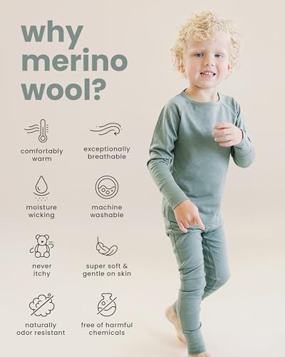 - 100% SUPER SOFT MERINO WOOL: Our kids leggings are crafted from premium 100% merino wool that is naturally pure, cuddly-soft to the touch, and uniquely breathable. They offer unbeatable warmth and softness, perfect for layering or standalone wear. Merino wool's natural properties keep your child perfectly cozy and dry, regulating temperature, wicking moisture, and resisting odors., PERFECT COMFORT, ALL DAY & YEAR-ROUND: From chilly morning walks to cold winter nights, our kids thermal leggings are designed to keep your child comfortable and warm all day long. The super soft merino wool is lightweight yet warm. As a natural climate control, it retains its warming properties even when wet., GROWTH-FRIENDLY DESIGN: Designed with extended cuffs, our leggings ensure prolonged use across multiple seasons. They feature soft flat seams for extra comfort and less bulk, and knee patches for extended wear. When paired with the merino wool kids long-sleeve top, whether worn alone or as base layers under other clothes, they are perfect for hiking, skiing, or exploring., CERTIFIED & SUSTAINABLE: Our commitment to quality is evident in every detail. Made with mulesing-free, Woolmark and Oeko-Tex 100 certified Australian merino wool, this base layer is a durable and responsible investment in your child's comfort and well-being., PREMIUM QUALITY: Buy with confidence from Woolino, a trusted US company, offering US customer service and industry leading warranty for your peace of mind. We are the makers of #1 selling wool baby sleep sacks since 2010.