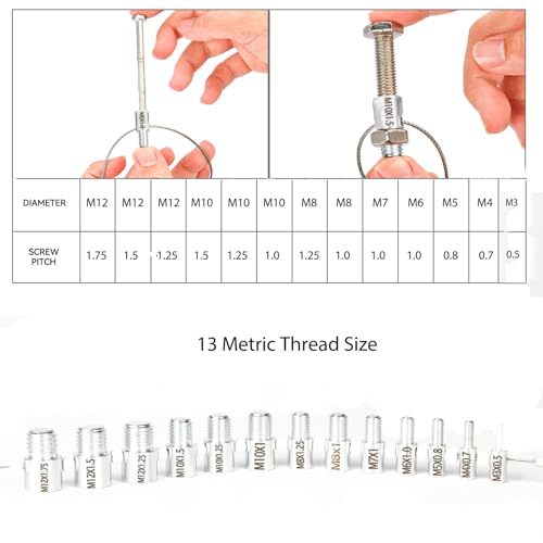 - Nut & Bolt Thread Checker: Thread checker is a tool used to quickly verify the size and nut of bolt threads. It has 28 pcs size thread gauges (15 pcs for inch size and 13 pcs for metric size). The individual gauges rotate freely on the wire cable for fast thread verification., Included Sizes: Bolt size finder Includes 15 inch sizes and 13 metric sizes for everyday nut and bolt inspection needs. Metric sizes include: M3x0.5, M4x0.7, M5x0.8, M6x1.0, M7x1.0, M8x1.0, M8x1.25, M10x1.0, M10x1.25, M10x1.5, M12x1.25, M12x1.5, M12x1.75; Inch sizes include: 6-40, 6-32, 8-32, 10-24, 10-32, 1/4-20, 1/4-28, 5/16-18, 5/16-24, 3/8-16, 3/8-24, 7/16-14, 7/16-20, 1/2-13, 1/2-20, Efficiency Improving: No more bent over the container looking for a nut/bolt to finish your project. Identifying the size and thread of nuts and bolts before making trips to the hardware store to match them, especially the nut or bolt that cannot be removed.Excellent item for the mechanic Every workshop should have one, High Quality Materials: Trust in our durable and high-quality nut & bolt thread checker - the inch gauges are clear zinc plated and the metric gauges are black oxide, ensuring a long-lasting and effective thread finder that you can rely on for all your needs, Applicable people: No matter what kind of work you do, auto mechanic, carpenter, welder, plumbers or workshop mechanic. I believe this set of thread tester is the tool you will need to make yourself satisfied. It can also serve as a white elephant gift for adults and a holiday gift for fathers and husbands on occasions like birthdays, Father's Day and Christmas