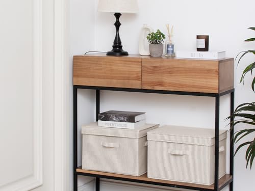 StorageWorks Fabric Storage Box with Lid, Stackable Linen Storage Bins for Clothes, Decorative Lidded Closet Organizers, Rectangle Basket for Shelves, Jumbo, Khaki Stripes, 2-Pack