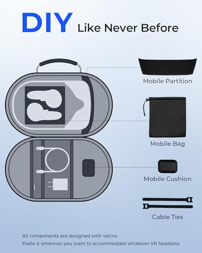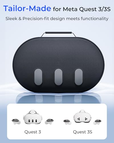 - Crafted Exclusively for Meta Quest 3/3S More Than a Case—A Style Extension for Your Setup. Whether it’s on your gaming shelf or in your backpack, this meta quest 3 case doesn’t just hold your gear—it complements it. The tri-eye-inspired exterior lines up with your Quest 3 when stored, creating a cohesive look that makes your entire VR setup feel intentional and high-end. No more clashing with generic accessories., Military-Grade Protection Engineered for VR Precision Tested for everyday travel impact resistance, this Oculus Quest 3 case features a 2.5 mm reinforced EVA core wrapped in a scratch-resistant faux-leather shell, durable enough for accidental drops from about 1 meter or being packed in a full suitcase. The dual-layer design absorbs and disperses impact, while the ultra-soft velvet lining cushions your headset and lenses, preventing shifting or micro-abrasions during commutes or trips., Premium Materials That Elevate the Experience Your Quest 3/3S deserves armor, not a flimsy pouch. A faux-suede outer shell wrapped around a high-density EVA core resists scuffs and everyday knocks, while the interior’s anti-static velvet lining feels luxuriously smooth against the headset’s lenses. Even the dual zippers glide with a quiet, fluid motion—no cheap plastic drag, just the seamless ease of a AUBIKA Quest 3 carrying case as refined as your Quest 3., No More Tangled Chaos—Everything Has Its Place We get it: VR gear comes with a lot of small parts. That’s why we added two adjustable Velcro straps to neatly secure your charging cables, while a mesh zipper pocket safely holds your VR controllers. Open the case, grab what you need, and go—no more digging through a jumbled mess or untangling cords. Organization, simplified, Lightweight Enough to Take Everywhere, Tough Enough to Keep Up At just 1.713 lbs and measuring 14.37 x 5.26 x 8.66 inches, this quest 3 travel case easily fits into gym bags, travel bags, or carry-ons without adding bulk. Its compact, durable design keeps your VR headset and accessories protected whether you’re heading to a friend’s VR session, traveling, or simply moving between rooms. Portability meets protection, Grows With Your Gear—Fits More Than Just Quest 3/3S Upgrading your headset later? No problem. This meta quest 3 travel case also accommodates Quest 2, Pico 4, and most mid-sized VR headsets. Additional compartments and pockets hold VR controllers, small accessories, or wireless earbuds, keeping everything organized and protected—so this case stays useful long after you switch device.