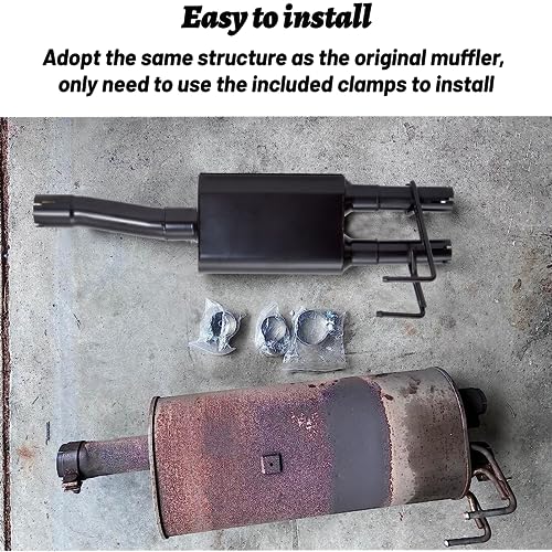 - Stainless steel structure construction --Stainless steel construction possesses greater corrosion resistance. It can maintain its strength at high temperatures and prolong the service life of the muffler., Muffler kit contains the muffler and the corresponding size clamp clip, choose the clamp to install more convenient for disassembly., Direct Fit: 2009-2010 Dodge Ram 1500 | 2011-2012 Dodge Ram 1500 | 2013-2014 Dodge Ram 1500 | 2015-2016 Dodge Ram 1500 | 2017-2018 Dodge Ram 1500, High-quality-- Internal partition wall and high quality material make it have the characteristics of high temperature resistance,Factory-style Welded structure provide stability and longer service life., Noise reduction performance--Factory-style using aerodynamics sound absorbs unwanted interior resonance to reduce radiated noise,OE-style dome head provides smooth, deep sound while reducing noise.