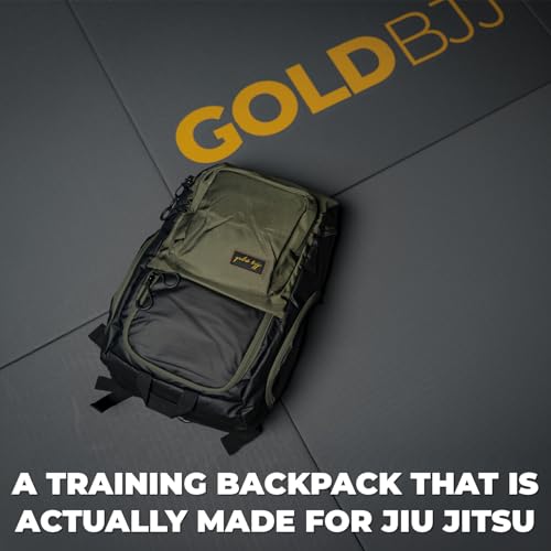 Gold BJJ Jiu Jitsu Backpack - Heavy Duty Gym Bag with Waterproof Gi Pocket (Olive)