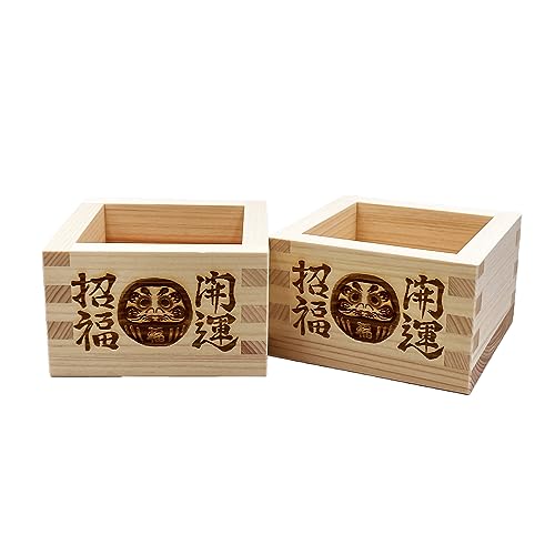 - Set of 2, Japanese Daruma artistic motif. Made in Japan., Size: 3.3x3.3x2.2 inch / each. 5.8floz. (approx.170ml), Place the sake glass inside the masu (wooden box) and pour the sake into the glass. Additionally, it can also be used as a vessel to hold small snacks or other items., In Japan, masu cups are also chosen as auspicious gifts. You can display them as items that bring good luck and fortune., Once you receive your Masu, you can use it as it is without washing. It is possible to wash the masu cups with water, but they should not be used with dishwashers or microwaves.