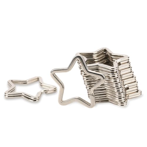 - Star Shaped Keyring: Metal star keychain clasp adopts star shape, which is unique and cute, simple and stylish, star bag charm has both functionality and aesthetics. Plus, silver metal key rings feature flat design, easy to install and disassemble, plenty of them for your daily needs, Ease to Use: To add a key, lift the stainless steel split rings keychain end to insert the key and wrap it around until it reaches the other end, easy to install or remove, not easy to loose. Star split rings for jewelry making are good for connecting clasps, charms, links and other ornaments, easy and convenient to carry, Silver Keychain Charms: The star shaped silver keychains for women are suitable for storage of keys, waist pendants, bag pendants, handicrafts, small pendants, souvenir photo key chains, etc. Plus, the sterling silver keychain ring can also be used as a key chain wear or on the package as decorations rings, etc., Cute Silver Keychain Accessories: You will receive 10pcs split rings for keychains, the plenty of sturdy star carabiner clip keychain can meet your daily needs. The carabiner clip star shape will hold multiple keys securely, keep all your essential keys organized. Metal keychain charms are also great for crafting, handmade craft, making awesome stuff and more, Metal Key Ring: The sliver carabiner star is made of metal material, which is strong and built to last, not easy to break and deform, star carabiner is suitable for daily use. Safety keychain set for women has glossy surface, no burr, star shaped carabiner won't hurt your hand, and cute keychain set can attach to a wide range of fixing points quickly and securely