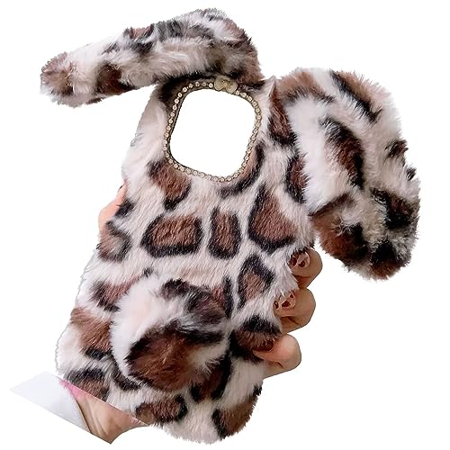 Miagon Furry Bunny Case for Samsung Galaxy S22 Ultra,Leopard Cover Girls Women's Super Soft Winter Warm Funny Rabbit Ear Faux Fur Hair Plush Fluffy Ball Cover