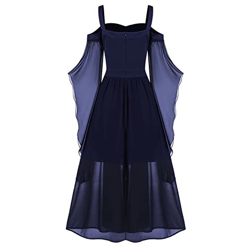 Gothic Vintage Dresses for Women Medieval Renaissance Dress Halloween Butterfly Sleeve Cold Shoulder Cosplay Dress Navy