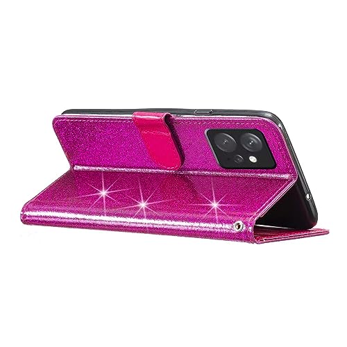 Miagon Wallet Case for Xiaomi Redmi Note 12 4G,Premium Bling Glitter PU Leather Magnetic Closure Stand Soft TPU Bumper with Card Slots Flip Cover,Rose Red