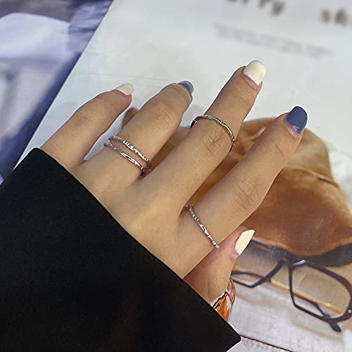 925 Sterling Silver Minimalist Hammered Textured Thin Knuckle Midi Stacking Rings