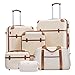 - Experience unmatched travel versatility with our stylish luggage set. The six-piece set includes a range of luggage sizes ( 20’’, 24’’, and 28’’), a 13’’ cosmetic case, a convenient weekender travel bag, and a toiletry bag. The three-piece set offers a 20’’ carry-on luggage with a travel duffel bag (or backpack) and a toiletry bag., Blending vintage charm with contemporary functionality, our luggage design encapsulates elegance and craftsmanship from a bygone era. It seamlessly integrates modern spinner wheels for effortless mobility and includes TSA-approved locks for enhanced security., Crafted from durable polycarbonate materials, our luggage is not only lightweight but built to withstand the rigors of travel. Made of premium polyester, the duffel bag is a great addition to your travel gear for multiple travel occasions, whether a long-distance trip or a weekend getaway., Choose the three-piece set with the backpack if you are a flexible itinerary traveler. Made of premium durable fabric, the smart backpack comes with large capacity, multiple pockets and USB charger port, giving you the agility and adaptability for spontaneous travel or frequent switch over modes of travelling life., Navigate through your travels effortlessly with our luggage's retractable handle and the bag’s back sleeve. And don’t miss out the cosmetic case or toiletry bag that help keep your beauty essentials organized. Every item in our sets is subject to meticulous quality testing to guarantee peak performance.
