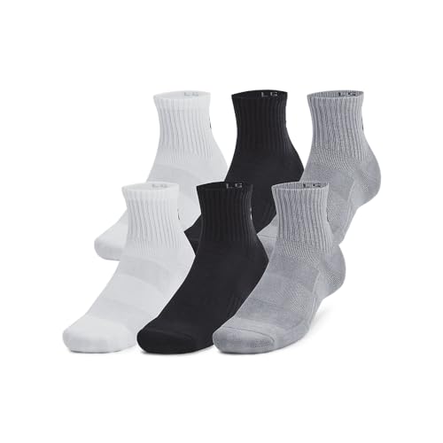 Under Armour Unisex Training Cotton Quarter Socks 6 Pack, (035) Steel/White/Black, Large