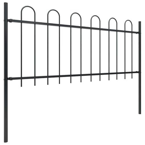 vidaXL Garden Fence/Outdoor Barrier - Black Steel, Hoop Top, 6.8 Meters Long, Secure Home/Walkway/Business, Easy Assembly