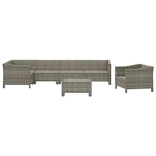 vidaXL 7 Piece Lounge Set in Grey Poly Rattan – Modern, Versatile Patio Furniture Featuring Modular Design, Sturdy Steel Frame, and Comfortable Cushions for Garden, Deck, or Poolside Lounging