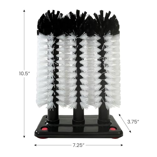 Anchorton Water Bottle Cleaning Brush - 3 Brush Bar Glass Cleaner - Brushes for Large Cups Glasses and Bottles - Suction Cups for Stable Grip on Sink, Bar and Kitchen Top - Includes Cleaning Cloth