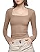 PUMIEY Women's Square Neck Long Sleeve T Shirts Slim Fit Tops Basic Tee Smoke Cloud Pro Collection, Taffy, Small