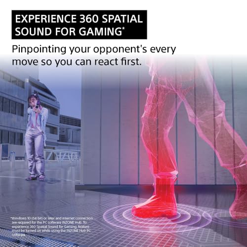 - Let sound give you the edge, with 360 Spatial Sound. Game for hours in comfort with lightweight and low-pressure fit. Bidirectional boom microphone and AI Noise Reduction., Up to 28 hours of continuous wireless gameplay. 40mm drivers for detailed sound, and immersive gaming. Game freely with low delay wireless or wired listening., Designed in collaboration with professional gamers to help you get the edge over your rivals. INZONE Hub PC software allows you to personalize your INZONE H5 experience., Sound field tailored to you, For PC and Perfect for PlayStation 5