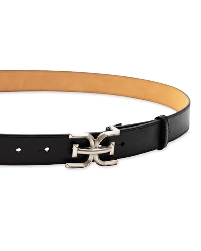 - STATEMENT BUCKLE: Elevate your everyday style with this casual Sam Edelman belt - featuring the iconic double-E monogram plaque buckle. You'll look polished and pulled together in this belt that is versatile and easy to match., CASUAL STYLE: The eye-catching buckle and slim 1.1 inch belt strap is best worn sitting on your hips., VERSATILE DESIGN: This trendy silver logo plaque buckle belt will show off your sense of style whether it's to elevate your jeans or accentuate your waist in your favorite dress, the styling options are endless., SIZING: Available in sizes Small-X-Large. Small (4-6), Medium (8-10), Large (12-14), X-Large (14-16).