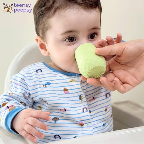 - Perfect Size: Tiny cups for baby's tiny hands with the capacity of 2oz (60ml), recommended for ages 4 months+, Practical Baby Cup: Open cups to help start your little ones on their transition journey from bottle to open cup. Non-slip silicone help develop fine motor skills. Designed for everyday life and perfect for indoor or outdoor use. Our tiny open cups are shatterproof and unbreakable. Comes in uniquely cute colors for the little ones., Baby Approved: Soft silicone reduces potential injury to developing gum & teeth, nurturing independence and accomplishment. Specifically made to foster strong lips, jaw, gums, teeth, gripping little hands, and other swallowing mechanisms of your baby., Reduce the Mess: Tapered and weight base for stability to prevent spillage. Textured bottom with tactile bumps provides sensory awareness for firmer grip., Super Easy to Clean: Smooth, with no sharp corner edges to resist gunk buildup. Stain resistant and scratch proof. Microwave and top-rack dishwasher safe for quick cleanup., Modern Design: this open cup set is so adorably cute and stylish, matched with baby-friendly color combinations. This makes the transition less intimidating and more fun for babies to finally try independent self-feeding! We have plenty of different colors to choose from so parents can mix and match with their baby’s other dinnerware already on hand. Solid feeding should be fun!, Baby Gift Idea Set: Made of food grade silicone, our cup is free of BPA, PVC, lead and phthalates. Well packaged in a craft box with clean, modern packaging design that is a perfect gift for babies!