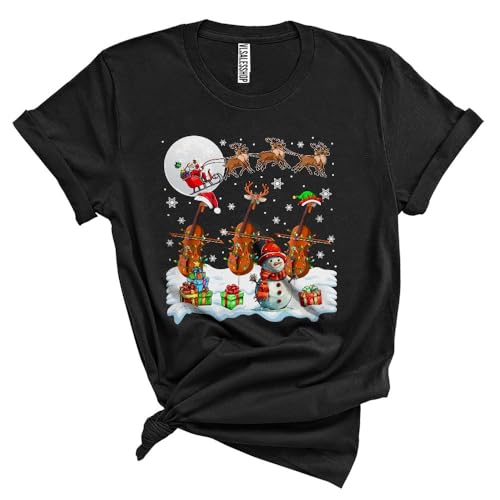 Santa ELF Reindeer Cello Player Joyful Christmas Musical Instruments Snow Around Snowman Unisex T-Shirt
