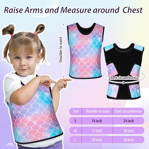 - Cute Design: you will receive 1 piece of kids compression vest with mermaid pattern, which can bring them comfortable wearing experience, please check the size carefully before purchasing, Size Information: the compression vest is about 24 inches/ 61 cm chest circumference, about 14 inches/ 35.5 cm in length, suitable for most little boys and girls to wear, please check the size carefully before purchasing, Fine Workmanship: our compression vest for kids is made of quality neoprene, elastic, flexible, breathable and comfortable, which are suitable for kids to wear, Easy to Put on: the compression vest for kids is easy to wear, which can be worn over or under your clothes, without restricting your activity; The vest can wrap tightly around the body and bring you a cozy wearing experience, Wide Range of Application: the compression vest for kids is practical and reliable, suitable for children to wear, providing even safety on the back, shoulders, chest, and abdomen