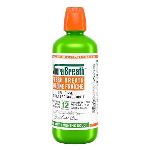 TheraBreath Fresh Breath Oral Rinse, Value Size, Clinically Shown to Fight Bad Breath for 12 Hours, Alcohol & Dye Free Mouthwash, Certified Vegan, Halal, Kosher, Gluten-Free - Mild Mint, 1L