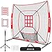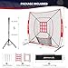 - Sturdy Construction: The 7-ply knotless thickened polyester mesh makes the net more durable and resistant to wear and tear, even with the hardest hits and throws. Crafted with premium nylon and a heavy-duty steel rod, this baseball net can withstand the strong winds and high-speed impacts. Its reinforced fiberglass tubes with high flexibility provide good cushioning and maintain shape for long-term use, which is suitable for both indoor and outdoor environments., One Stop Equipment: Includes a 7×7ft net, adjustable batting tee, robust iron frame tubes, baseball, 2 strike zone targets, 4 ground stakes and a portable carry bag. Whether you're a beginner or a seasoned player, these complete accessories make it an excellent choice for players of all skill levels., Adjustable Batting Tee & 2 Strike Zone Targets: The adjustable batting tee is helpful in improving your overall batting technique,allowing you to adjust the height according to your needs. The two types of batting strike zones can improve your accuracy, helping players focus on hitting specific areas of the strike zone and improving accuracy and control., Easy Setup & Train Anywhere, Anytime: You can install the net within 2 minutes; No tools are required. Whether sunny or rainy, the detachable bow frame with portable carry bag allows you practice anywhere and anytime. To ensure stability, especially during outdoor training or in windy conditions, the set includes ground stakes., Widely Usage for Practice: With the collection pocket, you can avoid picking up dropped balls and concentrate on training various baseball skills such as pitching, hitting, and throwing. More than just a baseball net, you can also use it to practice softball, cricket, hockey and other sports training.