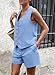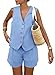 PRETTYGARDEN Women's Summer Two Piece Outfits Sleeveless Matching Sets Button Down V Neck Vest Waistcoat and Pockets Shorts (Light Blue,Medium)