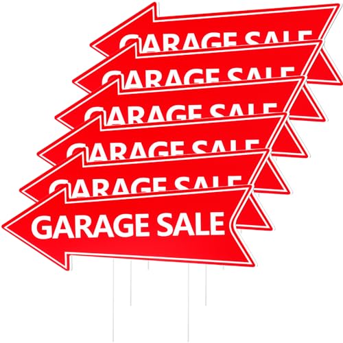 6PCS Garage Sale Signs Directional Arrow Signs with Stakes, 16 x 5'' Double Sided Red Corrugated Plastic Waterproof Garage Sale Sign for Transaction Event Left and Right Guest Moving Yard Signs