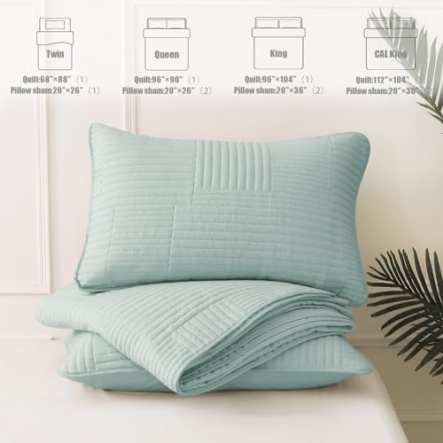 - Size: King size quilt set includes 1 bedspread (264 x 244 cm) and 2 pillowcases (51 x 91 cm). Measure your bed mattress and select a suitable size to make it drape nicely to the floor, Cozy material: Quilt sets are filled with premium material. It feels comfortable and soft to the touch. This extra soft quilt features a lightweight construction which is nice for layering. Not only that, ultrasonic stitching will not unravel and allows for many years of continued use, Multi occasion use: This set can be used as quilt, bedspread, comforter set, blanket, bed cover etc. Excellent coverlet quilt for spring and autumn, or the hot summer and cold winter. It is lightweight and breathable to use in hot weather. Covering it over comforter in cool weather will make you feel warmer. Enjoyed in the bedroom, guest room, sofa, loveseat, recliner, Fashionable design: Quilted with plaid geometric patterns, this beautiful solid color bedspread stands out from plain ones, giving your bedroom and living room an modern vibe, Easy to care: Premium quality fabric will not crumble and requires little care when washing, which economizes your much time. Machine washable in cold water, tumble dry and do not bleach