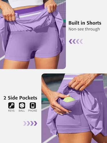 - TWO PIECE SKIRT SETS: Seamless workout crop top paired with pleated skirt creates a cute sports look, making it a trendy and fashionable choice for tennis outfits, BUILT IN BRA: Racerback athletic dress features a built-in bra with removable pads, providing the appropriate coverage and support, BUILT IN SHORTS: 4-tiered wide waistband for perfect tummy control, high waisted pleated skirts with shorts provides a non see-through coverage and freedom of movement, TWO POCKETS: Workout dress with two side pockets can store your essentials like phone, cards, keys and tennis balls, ensuring you have everything you need within reach, OCCASIONS: Slim fit exercise dresses is ideal for tennis, golf, pickleball, running, athletic and everyday casual wear, best choice for tennis enthusiasts