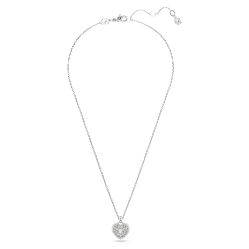 - Minimum Length: 14 7/8 in; Maximum Length: 17 3/4 in; pendant Size: 1/2 x 1/2 in; Clasp Type: Lobster, A Touch of Luxury: Let your love shine brightly with this luminous heart-shaped pendant necklace, featuring a sparkling round-cut crystal in a cage design with a rhodium-finished setting, Lovingly Crafted: The pendant is adorned with clear round crystals that catch the light from every angle, with a single stone placed at the chain elongation for an elegant and luxurious statement, Elevate Your Style: A unique addition to your personal jewelry collection or a loving gift for that special someone, this necklace adds a touch of glamor to any outfit or occasion, Designed to Last: Swarovski jewelry maintains its brilliance when simple care practices are observed; remove before contact with water, lotions, or perfumes and polish with a lint-free cloth, Items Delivered: (1) Swarovski Idyllia heart-shaped pendant necklace with round crystals and clear round central stone in a rhodium-finished setting, complete with Swarovski necklace box
