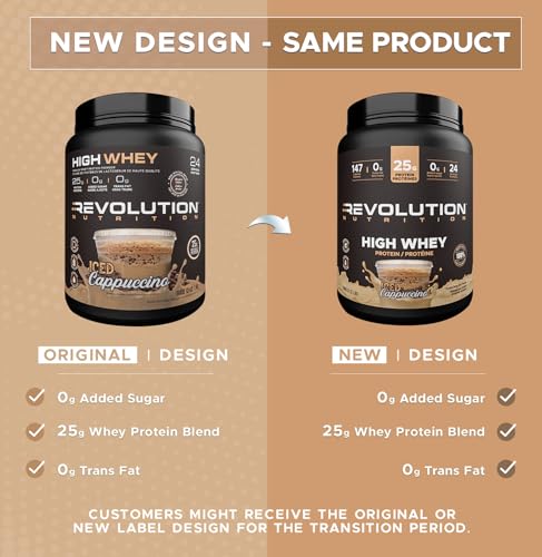 Revolution Nutrition, High Whey, Protein Powder 2LB, Whey Protein, Gluten Free, 25g of Protein Per Scoop, 908 g, 24 Servings (Iced Cappuccino, 2 Pound)