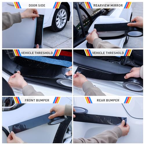 - EINESIN Upgraded Thickened Door Sill Protector - Now 0.6mm thick, surpassing the standard thickness of less than 0.5mm. Enhanced thickness means increased wear resistance for ultimate durability. Upgrade your protection today!, Anti-Collision- You can install this scratch cover strip sticker on the inner sill, outer sill, rear skid plate, outside of the door, inside the door, rear view mirror, bumper or anywherer around your vehicle. When it is installed outside the car, it prevent collision and scratches, when it is installed inside, it prevent the kicking from children. It will provide full protection for your car at all times., Size - The length of 1 roll is 394 Inches/ 33 FT, Width: 2 Inches/5 CM. Thichness: 0.6 MM. You can choose to buy 1 roll or 2 rolls., Easy to Install and Remove - Clean the surface mount position, then peel off the strong tape protective film and paste install easily with no tools. Easily to remove without residue without damaging the painted surface of your vehicle., Advantage - Waterproof and stain resistant, easily cleansed with water; UV protected; Stretchable with heat, can be shaped and molded over complex curves, flexible and stretchable., High Quality - This Door Sill Protector is made of rubber, durable, bendable, long service life, strong flexibility and durability. The rubber door bumper protector is freely deformable and freely cut. It can also be used to cover any existing scratches, paint damage protection and decorative. Textured with a carbon fiber design.