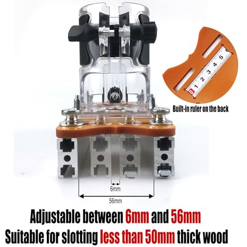 - CONSTRUCTION: Our slotting plate is made from a combination of aluminum alloy and engineering plastics, ensuring long lasting performance and preserving the professional craftsmanship for every project., Designed specifically for routers with a 65mm inner diameter, our support frame ensures a tight fit, enhancing accuracy and minimizing the possibility of errors., VERSATILE WOOD BOARD THICKNESS COMPATIBILITY: The wood router table insert plate accommodates wood board thickness ranging from 0 to 5cm, making it suitable for various woodworking tasks and allowing you to effortlessly handle different material thicknesses., ENHANCED STABILITY: The slotting support frame provides stable support and eliminates wobbling or shifting during use, ensuring accurate and consistent results., EASE OF USE: Our support frame is designed with user convenience in mind. It is easy to set up, adjust, and use, saving you time and effort in your woodworking projects.