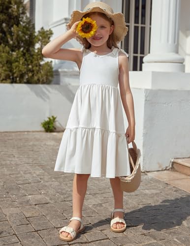 Arshiner Toddler Dress Little Girls Summer A-line Bowknot Sling Dresses Comfy Soft Trendy Outfits White 2-3T