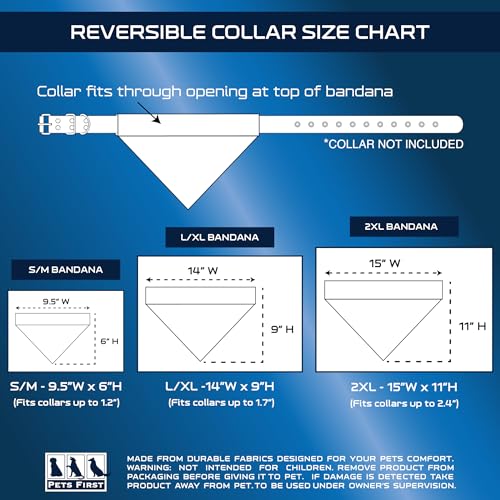 - NFL Officially licensed by the NFL. Don't be fooled by other unlicensed, lower quality products. This DOG BANDANA features the TEAM LOGO and bright colors of your favorite NFL team!, ✔ REVERSIBLE - 2 sided PET BANDANA, you can rotate the design your PUPPY wants to wear! 1 Side is a MESH BANDANA with screen-printed LOGO, & 1 Side is Poly-cotton with a premium embroidered TEAM LOGO!, ✔ BEST QUALITY DOG BANDANA - Made of a durable mesh & poly-cotton fabric making it the ideal bandanas for dogs, even for the most energetic puppies. The #1 Dog Bandanas for dogs both large and small, ✔ GAME DAY - This awesome SPORTY BANDANA is an adorable way to include your pet during game day. It’s also great for tailgating, barbeques, Halloween, and other parties!, ✔ SIZE - Available in 3 SIZES; Small/Medium Bandana: 9.5" x 6.5", Large/X-Large Bandana: 14.5" x 9.5", and XX-Large Bandana: 11" x 15". Available in many TEAMS, Choose your team and click ADD TO CART NOW!