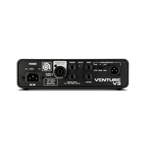 Ampeg Venture V3 Bass Guitar Head, 300 Watts, Legacy Preamp and 3-Band EQ with sweepable mids, Ultra Hi/3-way Ultra Lo switches, and a footswitchable SGT Overdrive Circuit with SVT and B15 voicings